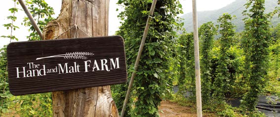 도 대표는 “어떤 맛이라고 콕 집어 표현하기는 어렵지만 웻 홉을 쓰면 싱싱한 느낌이 확연하게 드러난다”며 “수입 펠릿 홉은 루풀린 위주로 압축해 만들어진 것에 비해 웻 홉은 꽃잎까지 붙어있어 거기서 우러난 맛이 난다”고 설명했다. 헤드 브루어인 브랜든 페너가 양조 준비를 하고 있다가 수확한 홉을 바로 브루어리로 옮겨 투입하는 방식으로 최대한 신선함을 유지한다. 홉을 직접 재배하는 브루어리의 장점을 살려 서울 종로구 내자동에 있는 더핸드앤몰트 탭룸에서는 홉의 잎사귀를 튀겨서 안주로 내기도 한다. 깻잎과 비슷한 고소한 맛을 내면서도 더 쌉쌀한 맛을 느낄 수 있다.
