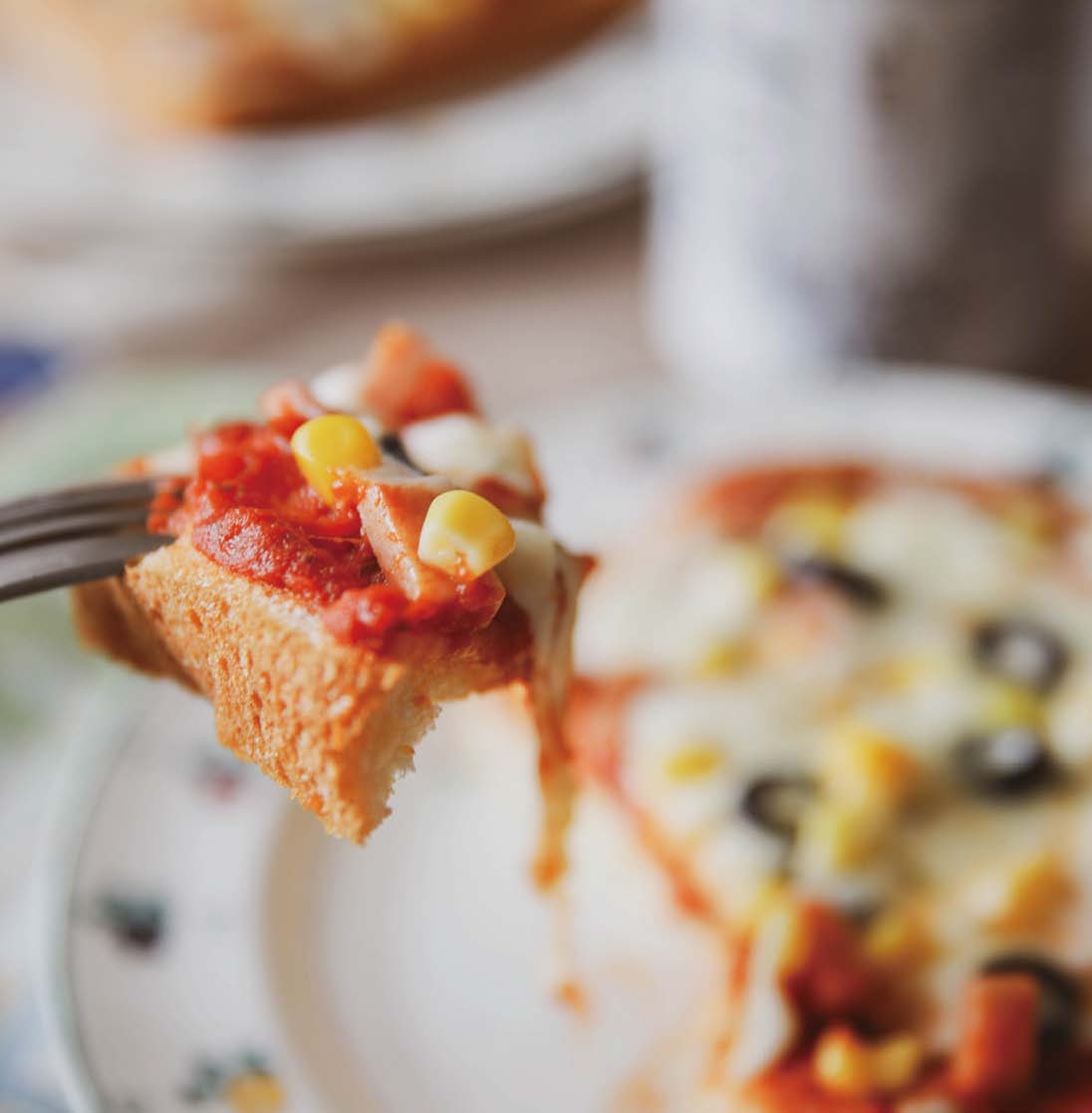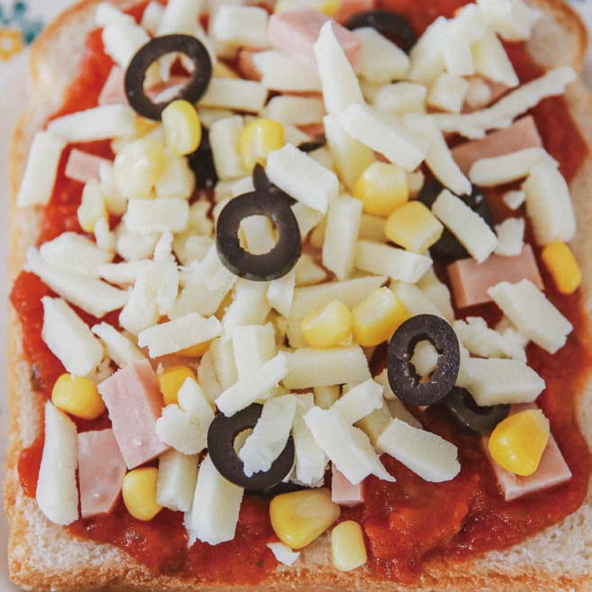 초간단 식빵 피자는 편의점에서 쉽게 구할 수 있는 재료로 10분 이내면 만들 수 있다. 정해진 토핑만 올려도 되지만, 기호나 상황에 따라 올리브 대신 통조림 파인애플을 올려도 좋고 스팸 대신 베이컨을 올려도 괜찮다. 그것도 귀찮으면 토마토소스만 쓱쓱 바르고 모차렐라 치즈만 올려도 맛이 좋다. 완성된 비주얼도 제법 훌륭해서 멋진 요리를 만들었다고 스스로 칭찬할 기분도 든다.