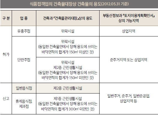-식품접객업을 하고자 하는 분은 해당 소재지 건축물관리대장 상의 건축물용도가 선택한