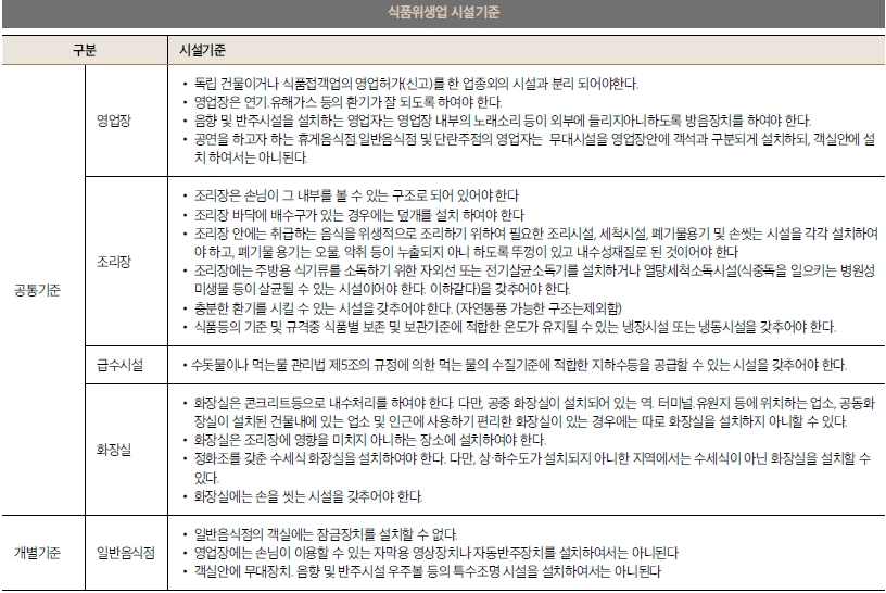 음식을 조리해서 판매하는 경우가 많은 크래프트 맥주 펍의 경우 주방의 시설도 신경써야 한다. 건축법 시행령에서 이와 관련된 사항을 규정하고 있다.