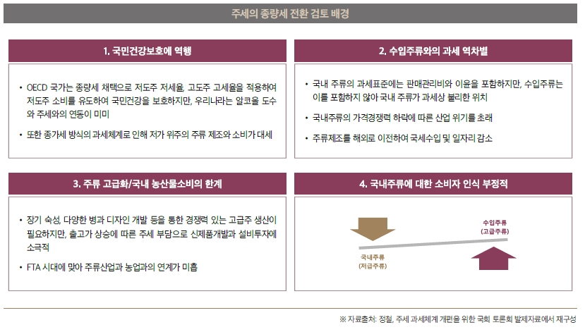 주세 과세체계 개편의 검토 배경과 방향성, 종량세는 어디로 가야 하는가?