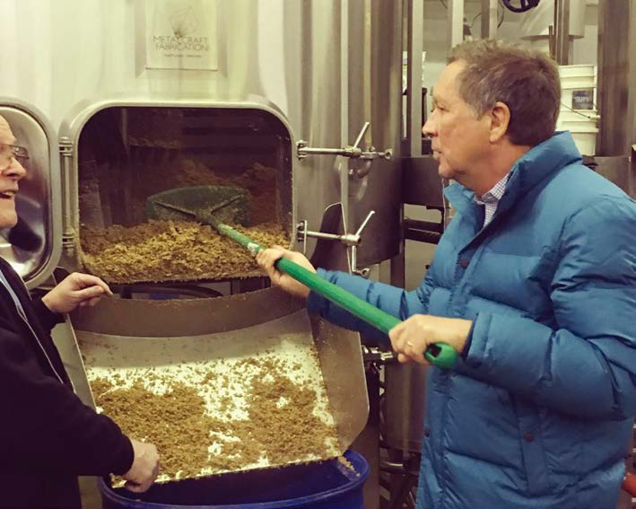존 케이식 오하이오 주지사가 뉴햄프셔주 헨니커 브루잉 컴퍼니 (Henniker Brewing Company)에 서 맥주 양조에 사용된 몰트(spent malt) 처리 과정을 체험하고 있다. (출처: 존 케이식 공식 인스타그램)