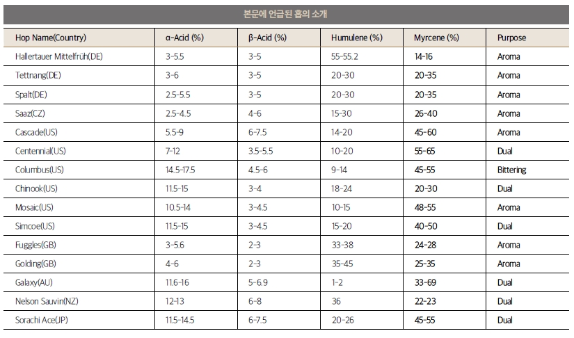 홉의 성분자료 출처: ychhops.com