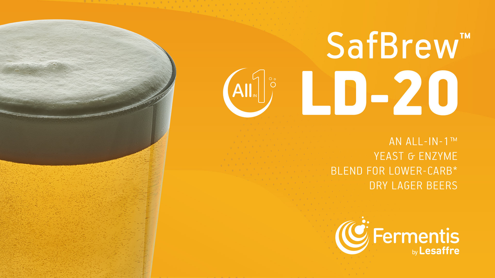 SafBrew™ LD-20은 맛있는 세션 스타일의 "저탄수화물 라거*"를 만들 수 있는 새로우면서도 신뢰할 수 있는 제품으로 덱스트린과 같이 대부분의 효모만으로는 분해할 수 없는 다당류를 분해할 수 있다. 해당 제품에 함유된 당화효소(amyloglucosidase, AMG)는 모든 다당류를 처리하므로 당 함량의 최대 100%가 효모에 의해 발효될 수 있으며, 이를 통해 같은 맥즙에서도 더 드라이하고, 더 많은 알코올을 생산할 수 있게 된다. 또한 모든 당을 발효시킬 수 있기 때문에, 전체 탄수화물 함량 역시 크게 감소하게 된다.