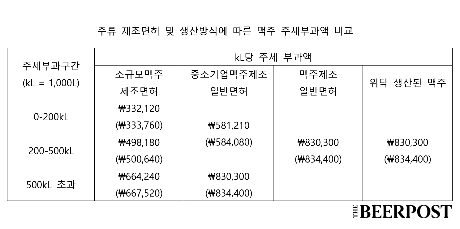 *괄호 안의 주세 부과액은 주세법 개정에 따른 2021년 3월 1일 이후 출고분에 적용되는 맥주의 주세