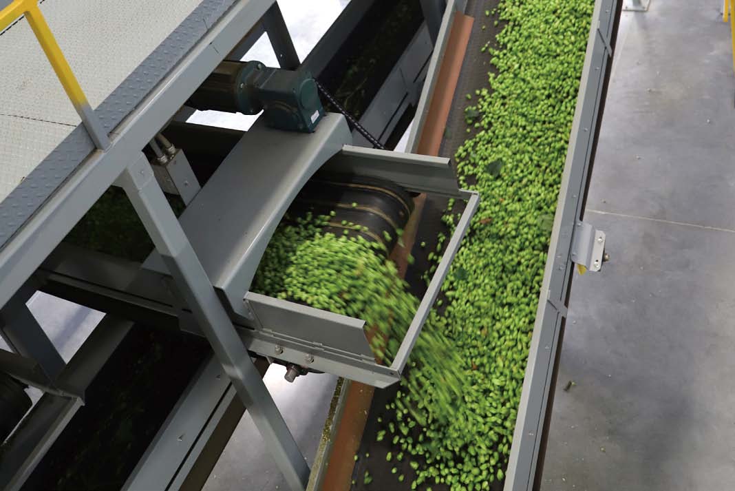 수확할 때는 홉이 달린 덩굴 전체를 자른다. 수확된 홉 덩굴에서 홉 콘을 분리하는 것으로 본격적인 제품 가공이 시작된다. 이 때부터는 시간과의 싸움이다. 자동화 기계를 이용해 홉 콘이 덩굴에서 분리되고 나면, 한낮의 열기 속에 품질이 빠르게 저하되므로 이를 막기 위해 빠른 속도로 가공해야 한다. 따로 출하되는 물량을 제외하고, 홉 콘은 가공되지 않은 생 홉일 때 바로 건조장으로 옮겨진다. 건조장에서는 신선한 홉의 품질 저하를 최대한 막기 위해 분쇄 등을 거치지 않고 8.5-10.5%의 수분만 남도록 열풍으로 홉을 건조한 뒤 압착하여 포대에 담는다. 그리고 모든 포대는 샘플링을 통해 품질 검사를 받는다. 이렇게 만들어진 건조 홉(Whole Leaf Hops)이 야키마 치프 홉스에서 생산하는 모든 제품의 기초가 된다. 건조 홉을 그대로 맥주 양조에 사용하는 경우도 있지만, 대개는 여러 형태의 제품으로 재가공된다.