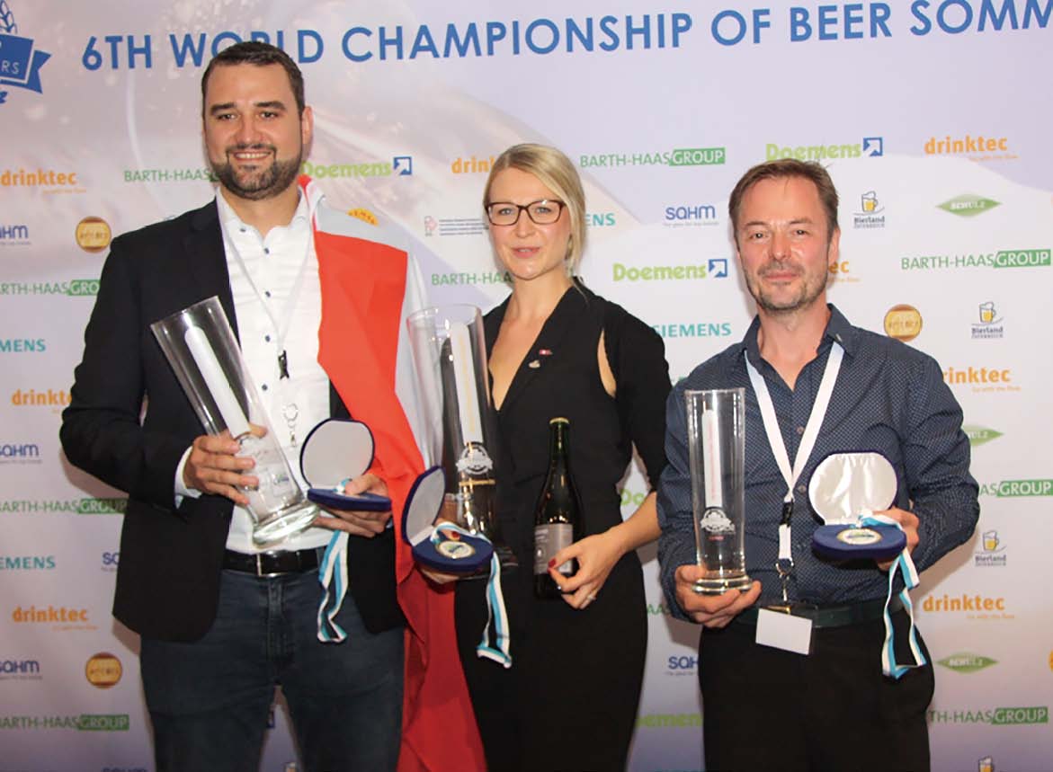 치열한 경쟁을 거쳐 영예로운 우승을 거머쥔 비어 소믈리에는 독일 대표 엘리자 로이스(Elisa Raus)였습니다. 대회 역사상 최초로 여성 월드 챔피언이 탄생한 순간이었습니다. 뒤이어 2위는 스위스 대표 패트릭 토미(Patrick Thomi), 3위는 독일 대표 미하엘 프리드리히(Michael Friedrich) 이 수상했습니다. 월드 챔피언이 된 엘리자는 향후 2년간 타이틀을 유지하며 세계적으로 ‘맥주 앰배서더’(beer ambassador to the world)의 역할을 수행하게 됩니다.