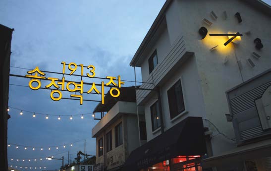 1913송정역시장은 국밥집, 정육점, 어물전, 방앗간과 같은 기존 터줏대감 가게들과 SNS 등에서 화제가 된 빵, 디저트, 소프트 음료 등을 판매하는 청년들의 트렌디하고 감각적인 가게들이 함께 어우러져 푸근하면서도 신선한 느낌을 동시에 준다. 이 색다른 시장 한가운데 위치한 밀밭양조장은 누가 뭐래도 1913송정역 시장의 분위기를 주도하고 있다고 할 수 있다.