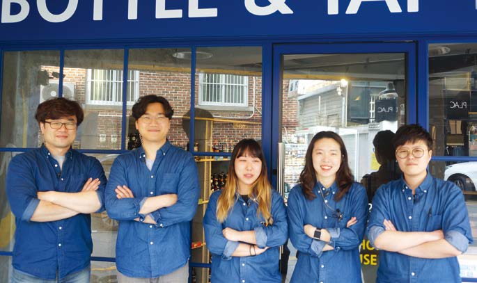 BOTTLE&TAP HOUSE라는 커다란 간판과 아기자기한 그림이 눈에 띄는, 노랑과 파랑이 어우러진 당장 인스타에 사진을 올려야 할 것만 같은 계몽의 첫인상은 봄날 화단에서 만난 팬지꽃 같았다. 압구정 골목을 화사하게 만든 계몽은 2017년 3월 8일 문을 열었다.